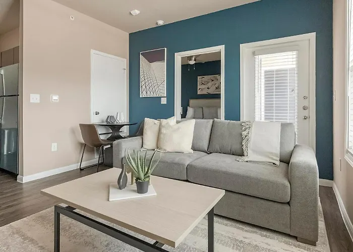 Disfruta de la comodidad de una cocina en el Apartamento Landing Stylish 1Bd Gym Pool, permitiendo a los huéspedes preparar sus propias comidas caseras.